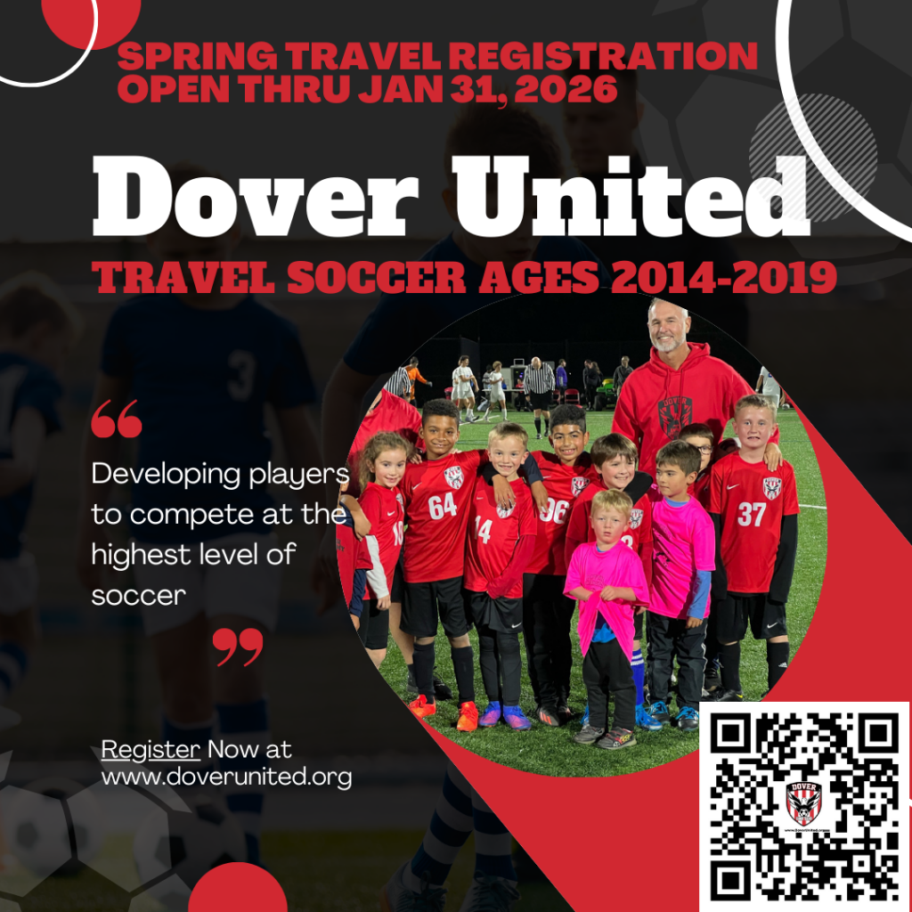 We’re excited to kick off another great season with Dover United! Spring Travel Registration is officially open, and here’s everything you need to know: Registration Details Open Now Through: January 31, 2026 Fee: $175 Late Fee: $50 begins January 15, 2026 Uniforms: Approximately $90 for new players Register Here: Click to Register Important Dates League…